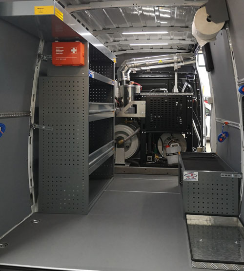L’installazione del sistema sulla parte posteriore permette di avvicinarsi al luogo da ripristinare con il retro del veicolo e avere la parte anteriore del vano di carico libera per attrezzature e accessori vari.